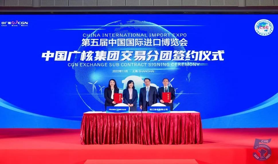 11月7日,第五屆中國國際進(jìn)口博覽會中國廣核集團(tuán)交易分團(tuán)簽約儀式在國家會展中心(上海)舉行。