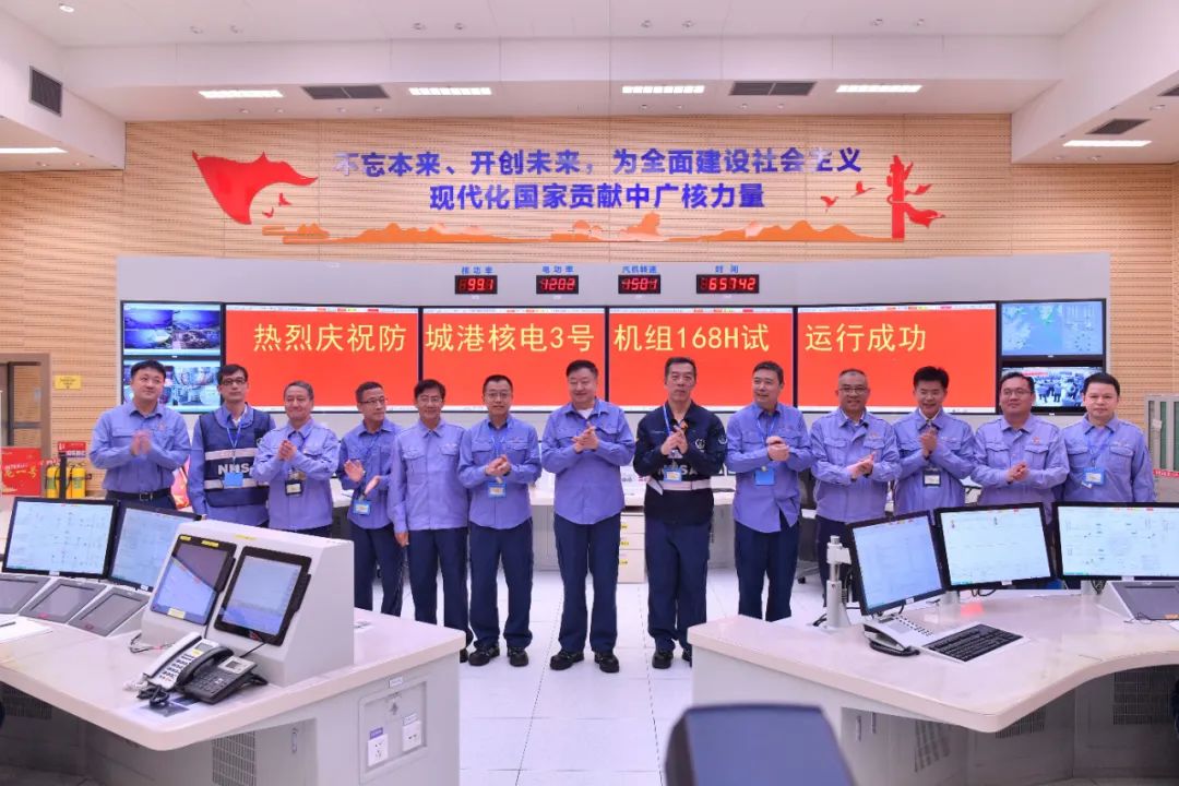 ▲李京喜、楊長利、高立剛、郭利民、劉海軍等共同見證防城港核電站3號機組168小時試運行試驗圓滿完成