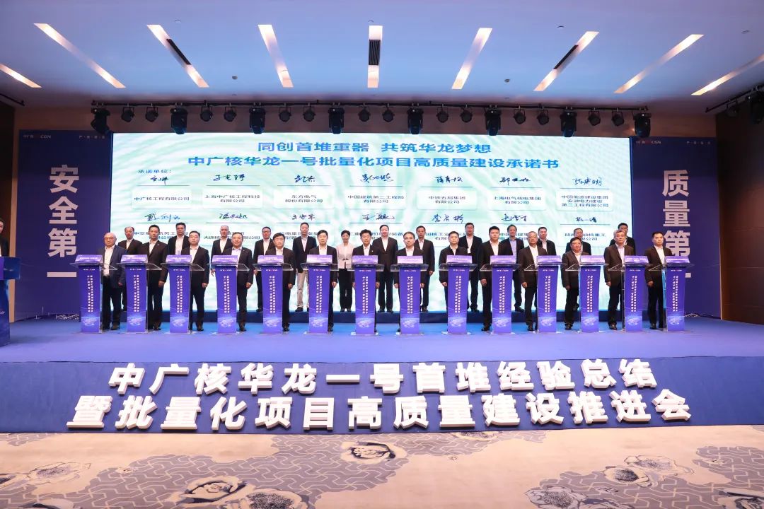 截至目前,中廣核旗下共有6臺在建核電機組,全部采用“華龍一號”技術(shù)路線,“華龍一號”批量化建設(shè)穩(wěn)步推進。會上,中廣核及各參會企業(yè)共同簽署《華龍一號批量化高質(zhì)量建設(shè)承諾書》,共同承諾發(fā)揮國有企業(yè)經(jīng)濟增長的頂梁柱作用、科技創(chuàng)新的國家隊作用、安全發(fā)展的“壓艙石”作用,繼續(xù)攜手并進,共同邁向“華龍一號”項目建設(shè)新階段。