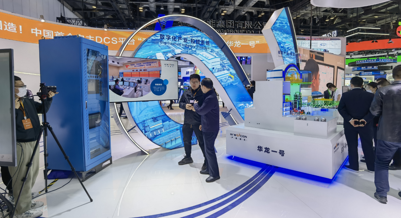 開幕式后,與會嘉賓來到中廣核展臺,聽取并了解中廣核近年來在“華龍一號”批量化建設(shè)、科技創(chuàng)新等方面的高質(zhì)量發(fā)展成果。中央電視臺等媒體記者在展會現(xiàn)場,就中廣核科研創(chuàng)新成果“華龍一號”與“和睦系統(tǒng)”等進(jìn)行采訪報(bào)道。