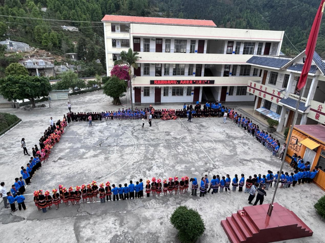 對唱山歌是壯族文化中非常重要的一部分,男女生分別站在兩邊,他們用稚嫩的歌聲,表達(dá)著節(jié)日的喜悅,在一旁圍觀的小朋友也跟隨著歌曲的節(jié)奏,一起歡呼拍手,現(xiàn)場暢快淋漓。