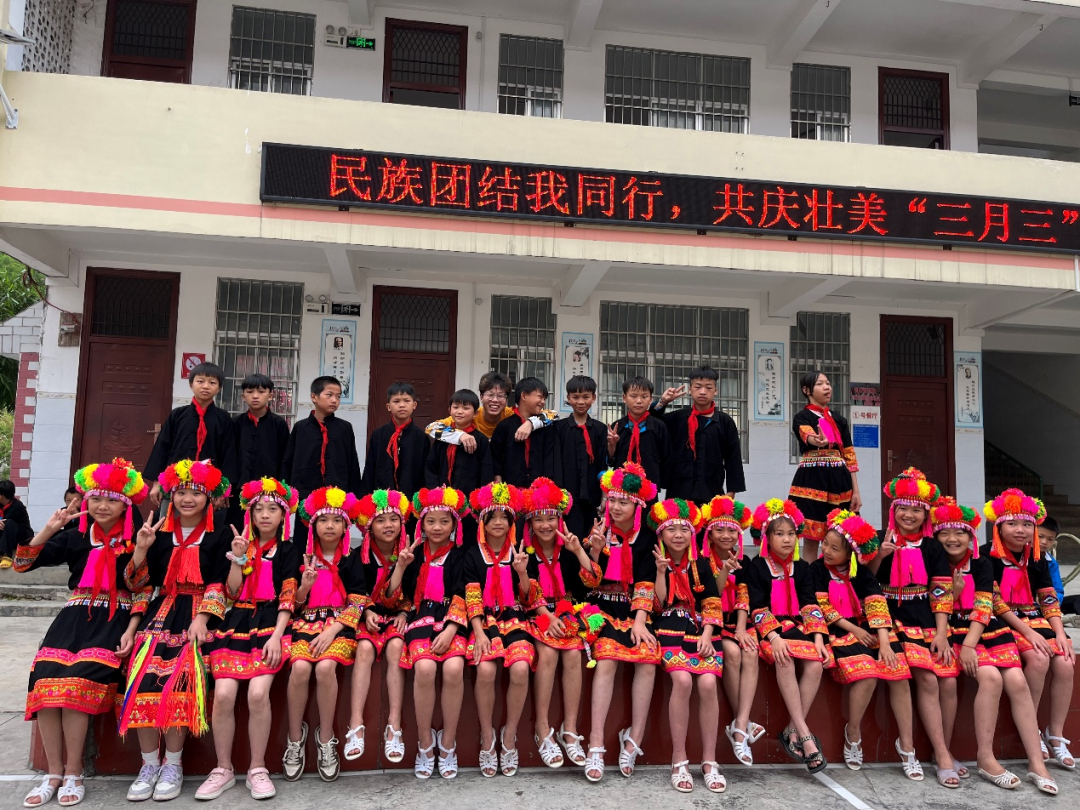 我來學(xué)校半個月后,遇到“壯族三月三”節(jié)日,這在廣西是一個非常盛大的節(jié)日。學(xué)校也早早進(jìn)入節(jié)日的氛圍,不過最讓我驚喜的還是孩子們。