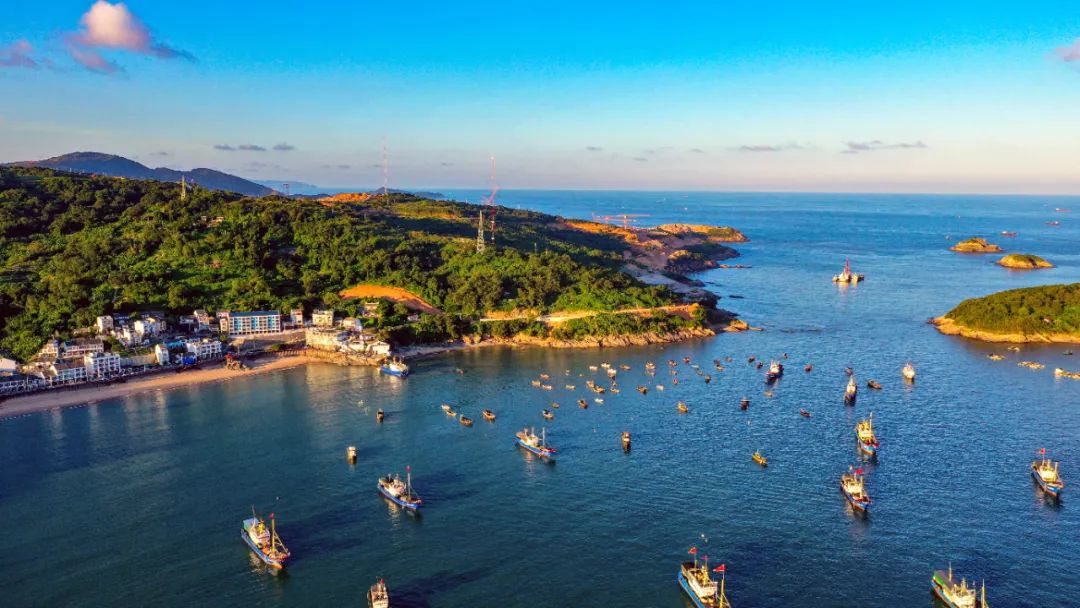 ▲如今的長(zhǎng)沙村已繪就“漁旅融合”新圖景,海岸線遠(yuǎn)端塔吊處即為三澳核電項(xiàng)目施工建設(shè)現(xiàn)場(chǎng)。