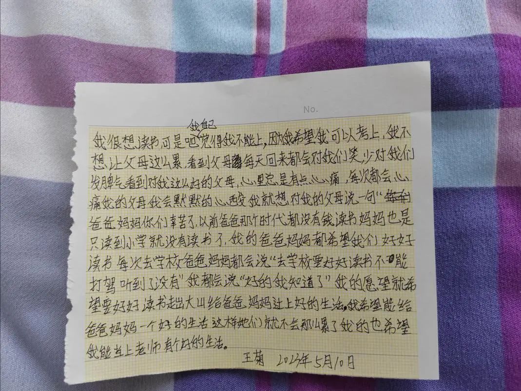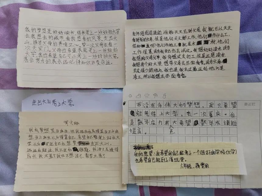 他們爭先恐后地問我:“老師,你知道杭州在哪里嗎?老師,廣西有哪些大學……”那一刻,他們眼中閃耀著光芒,懷揣著自己的夢想,渴望探索外面的世界。課間休息時,孩子們將自己的夢想寫在小紙條上遞給我。這一瞬間,我看到一個個夢想在大山深處閃耀,就像他們明亮的雙眼一樣!