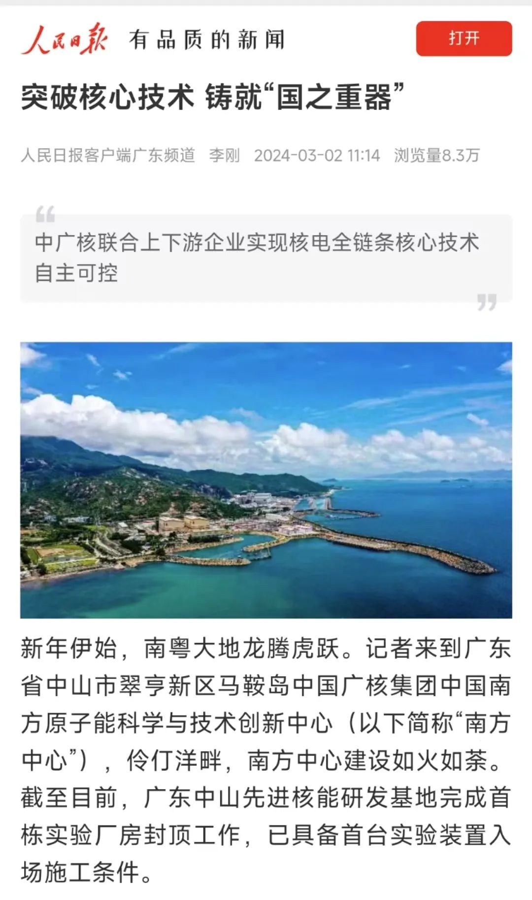 南方中心是中廣核深入實(shí)施創(chuàng)新驅(qū)動發(fā)展和“清潔能源+”戰(zhàn)略的積極實(shí)踐,聚焦先進(jìn)核能原創(chuàng)技術(shù)策源地建設(shè)和戰(zhàn)略性新興產(chǎn)業(yè)布局,圍繞“華龍一號”、先進(jìn)四代核能技術(shù)等新型核電堆型研發(fā)和原創(chuàng)技術(shù)攻關(guān),以“一總部三基地”布局,在深圳、中山、陽江同步建設(shè),立足灣區(qū)、支持全省、輻射全國,助力粵港澳大灣區(qū)科技創(chuàng)新、“一核一帶”區(qū)域產(chǎn)業(yè)發(fā)展,為打造新質(zhì)生產(chǎn)力供給提供新引擎。