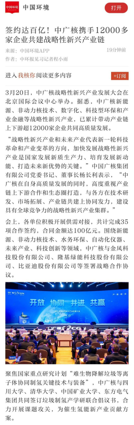 簽約百億!超40家主流媒體聚焦報(bào)道中廣核戰(zhàn)新產(chǎn)業(yè)大會(huì)