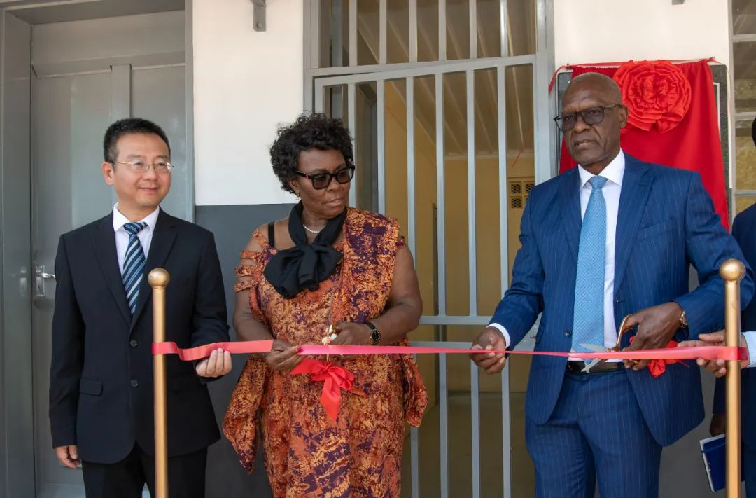 ▲2024年10月4日,在納米比亞北部奧漢圭納省拉扎盧斯豪菲庫聯(lián)合學(xué)校,納教育、文化和藝術(shù)部部長Ester Anna Nghipondoka(中)、納礦能部部長Tom Alweendo(右)、斯科公司總經(jīng)理邱斌(左)為該校首個計算機房剪彩