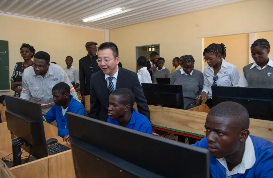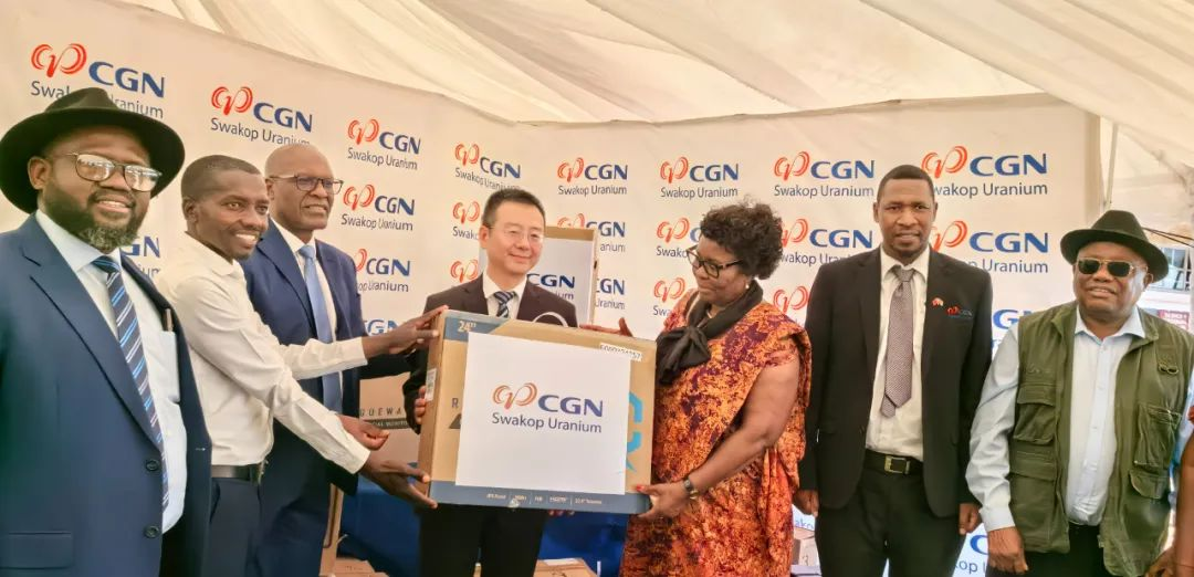 近日,中廣核鈾業(yè)下屬斯科公司為納米比亞Ohangwena(奧漢圭納)省Lazarus Haufiku學(xué)校(拉扎盧斯豪菲庫聯(lián)合學(xué)校)捐贈的計算機房投用儀式在位于納米比亞和安哥拉邊境交界處的Lazarus Haufiku學(xué)校舉行。本次儀式上,斯科公司捐贈了16臺電腦、1臺大型打印機,并正式啟用全新建設(shè)的學(xué)校圍欄。納米比亞教育文化藝術(shù)部長Ester Anna Nghipondoka(安娜·恩吉蓬多卡)、礦業(yè)能源部部長Tom Alweendo(湯姆·阿爾溫多),Ohangwena省省長Sebastian Ndeitunga(塞巴斯蒂安·內(nèi)通加)、省教育廳廳長、Lazarus Haufiku學(xué)校以及周邊學(xué)校校長和全校師生等600余人出席了捐贈儀式。