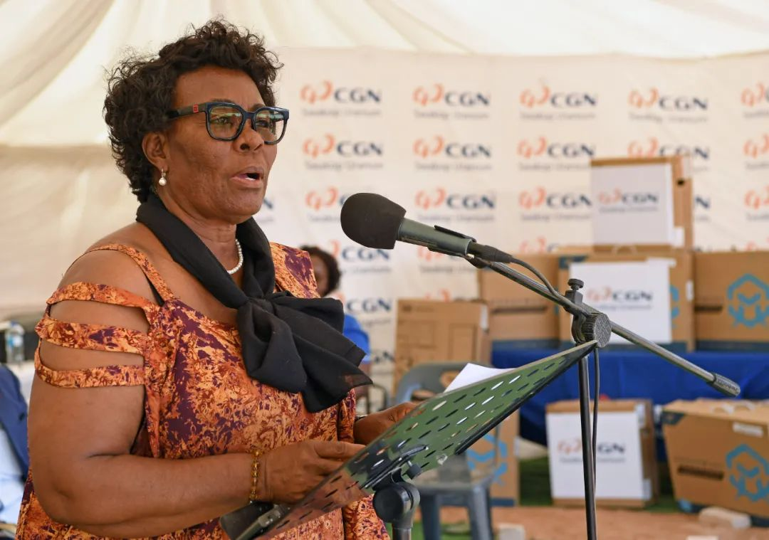 ▲納教育、文化和藝術(shù)部部長Ester Anna Nghipondoka在捐贈儀式上致辭
