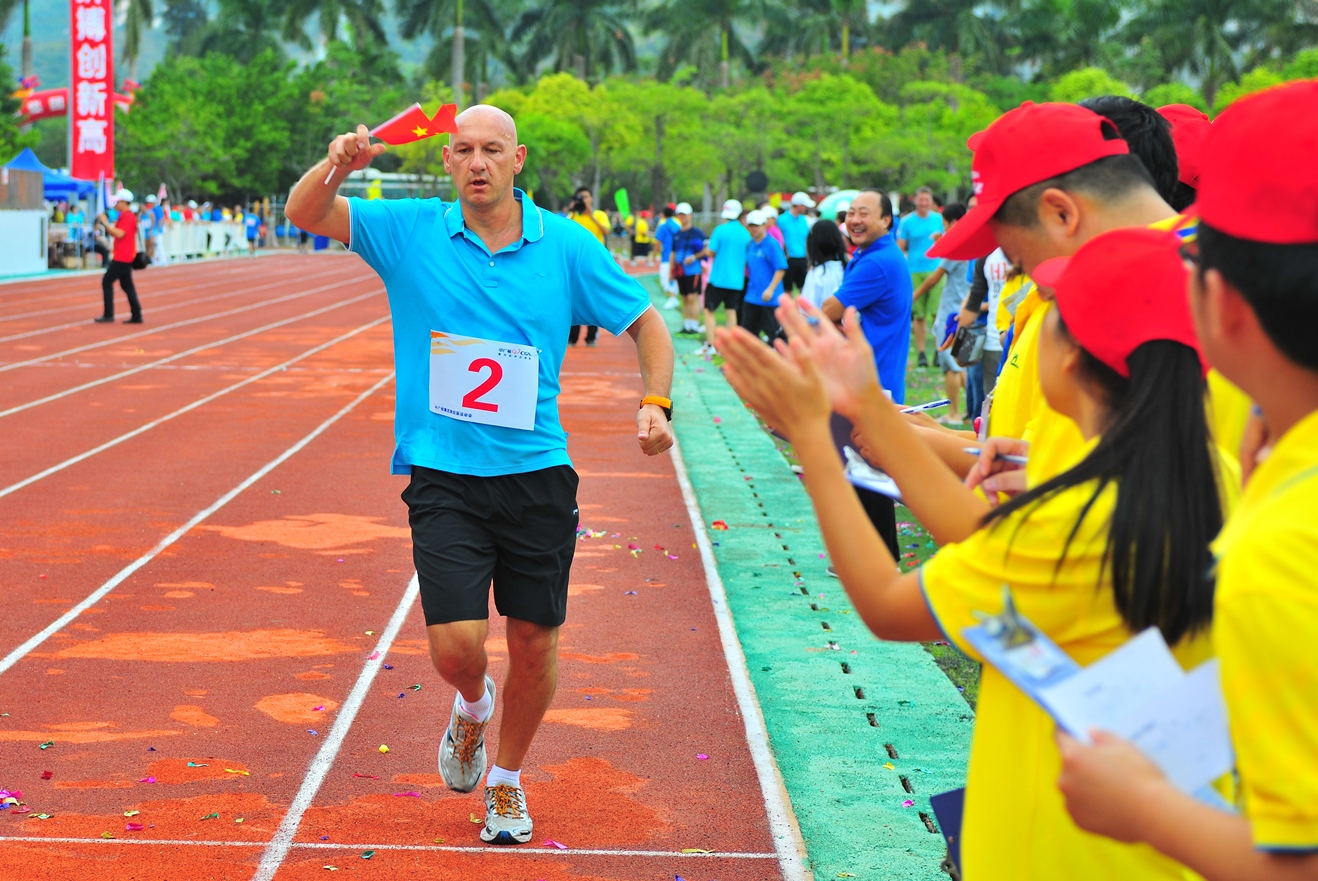 2012.10.29集團(tuán)第四次運動會上,臺山公司法方運動員拿著小國旗跑完最后的賽程...